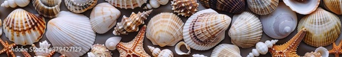 © Yahor Shylau , Obraz premium seashells widescreen background.