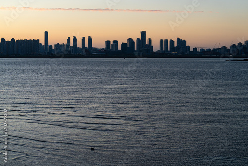 © 안구정화, Fototapeta premium seaside city in dusk during sunset