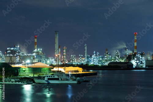 Naklejka premium Seaside Industrial Factory working at night