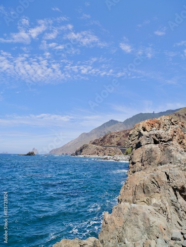 Fototapeta premium Seaside view to the beach Almáciga Beach (Playa de Almáciga) from the Roque de las Bodegas, Almáciga, Anaga Rural Park, Santa Cruz de Tenerife, Canary Islands, Spain