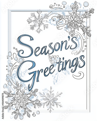 © Nei Mar, Naklejka premium Season's Greetings Card with Silver and Blue Snowflake Border