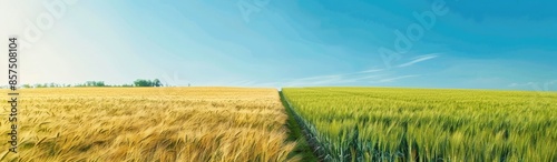 © Riya, Fototapeta premium Seasonal Agriculture Comparison: Aerial View of Fields from Spring to Autumn
