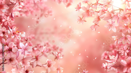 Fototapeta premium Seasonal background with cherry blossoms and spring flowers