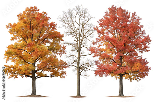 © islam bepari, Fototapeta premium Seasonal Foliage Transition: Yellow, Brown, and Red Autumn Leaves
