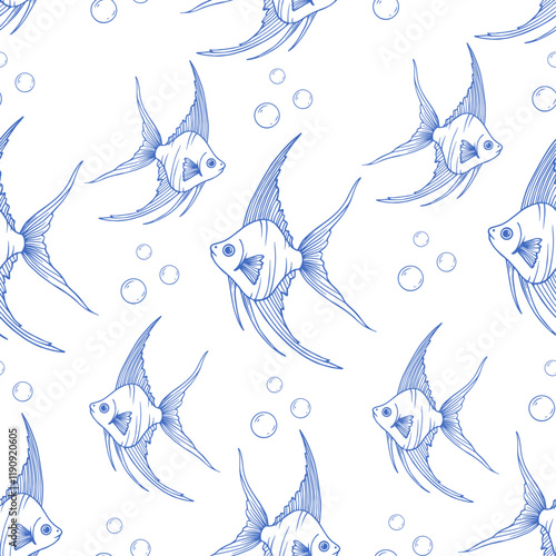 © Катерина Якубович, Obraz premium Seasonal seamless pattern with small fish. Vector graphics.