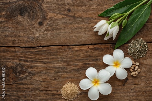 Naklejka premium Seasoned Tsibula displayed on a wooden surface, overhead shot with space for text.
