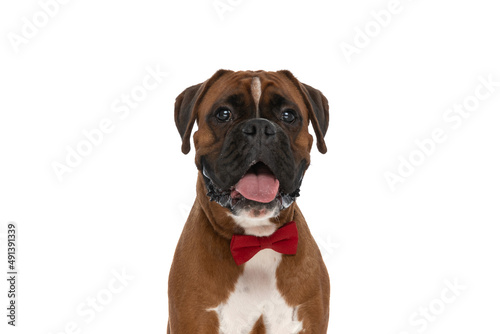 Obraz premium seated boxer dog sticking his tongue out