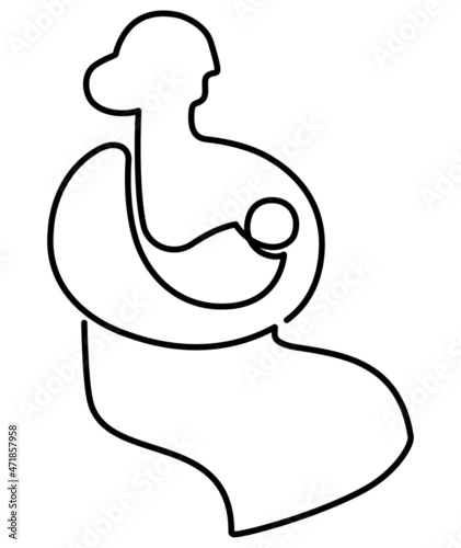 © iuliiawhite, Fototapeta premium Seated woman with a baby in her arms. Continuous line drawing. Flat design illustration.