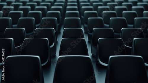 © Badass Prodigy, Fototapeta premium Seats of black tribune on sport stadium. empty outdoor arena. concept of fans. chairs for audience. cultural environment concept. color and symmetry. empty seats. modern stadium