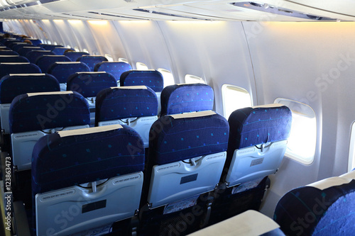 © PixieMe, Fototapeta premium Seats of economy class in airplane