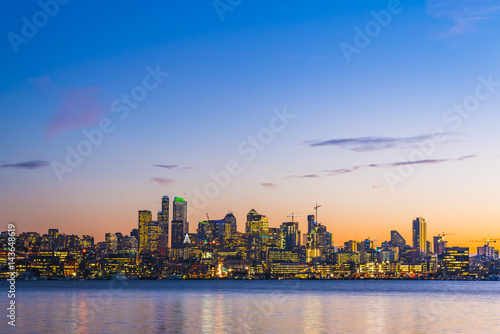Fototapeta premium Seattle city scape at night with reflection on Union lake,Seattle,Washington,usa.