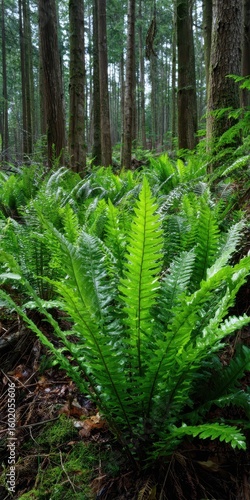 © Mykola, Fototapeta premium Seattle Forest. Tranquil Western Sword Fern in Lush Green Wooded Area