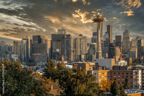 © tamas, Obraz premium Seattle panorama view with sunset sky