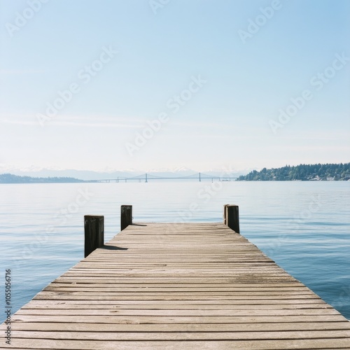 Naklejka premium Seattle pier view with I-90 bridge.