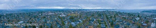 Fototapeta premium Seattle Queen Anne Housing Neighborhood Aerial Panormaic Cityscape