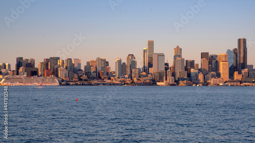 © RG, Fototapeta premium Seattle skyline at sunset across the bay Washington state.