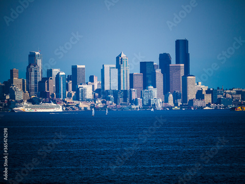 © quasarphotos, Naklejka premium Seattle Skyline from Puget Sound in Washington State USA