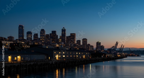 Obraz premium Seattle Washington cityscape at dusk showcasing waterfront and skyline view