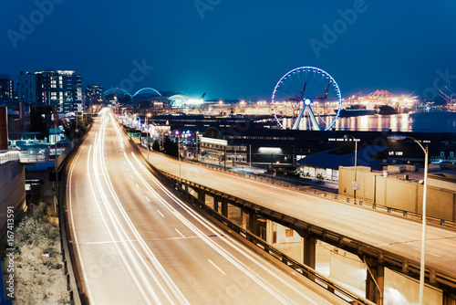 © Richard, Naklejka premium Seattle Waterfront traffic light trails