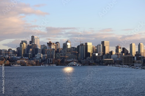 Fototapeta premium Seatty skyline at sunset