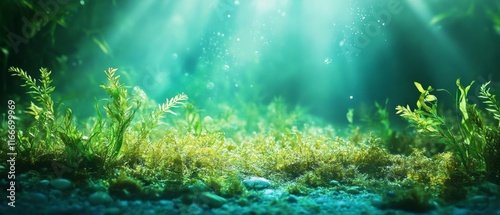 © Adi, Fototapeta premium Seaweed and natural sunlight underwater seascape in the ocean