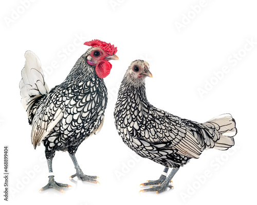 © cynoclub, Fototapeta premium Sebright chicken in studio