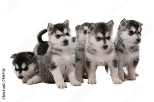 © Michael Ebardt, Fototapeta premium Sechs Siberian Husky Welpen