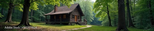 Fototapeta premium Secluded cabin nestled deep in the woods, perfect for a peaceful getaway or...