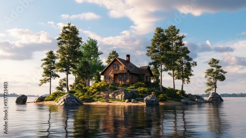 © Randu, Fototapeta premium Secluded Cabin on a Tranquil Island