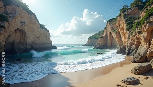 Fototapeta premium Secluded Cove Beach with Turquoise Waves
