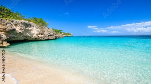 Fototapeta premium Secluded Cove Turquoise Water Sandy Beach Tropical Paradise