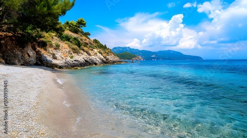 © Chayanin Wongpracha, Fototapeta premium secluded pebble beach in greece with crystal clear turquoise wat