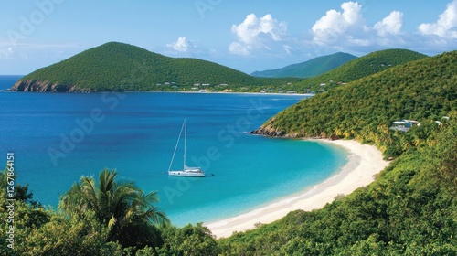 © Biancaart, Fototapeta premium Secluded Sailboat Anchored in a Tropical Bay