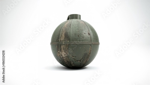 © NFTNexus, Fototapeta premium Second world war era military ordnance in bright green on plain white backdrop, highlighting wartime weaponry