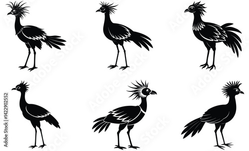 Naklejka premium Secretary bird animal bird silhouette black vector art design set