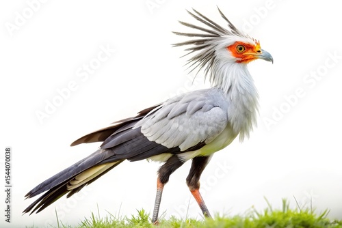 © PNG HOUSE, Obraz premium Secretary bird in profile on grass against white background