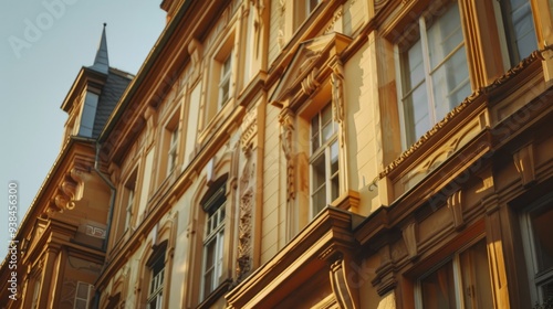 © TheWaterMeloonProjec, Obraz premium Section of an Ancient Structure's Street Front with a Gabled Roof