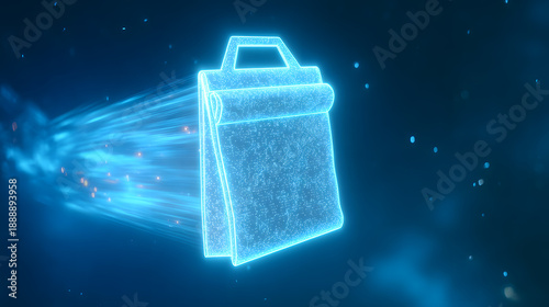 Fototapeta premium Secure digital briefcase icon with glowing data trails, cybersecurity protection, encrypted data transfer, secure file storage, and digital privacy concept