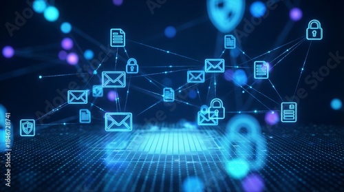 Obraz premium Secure digital communication network with encrypted emails and documents