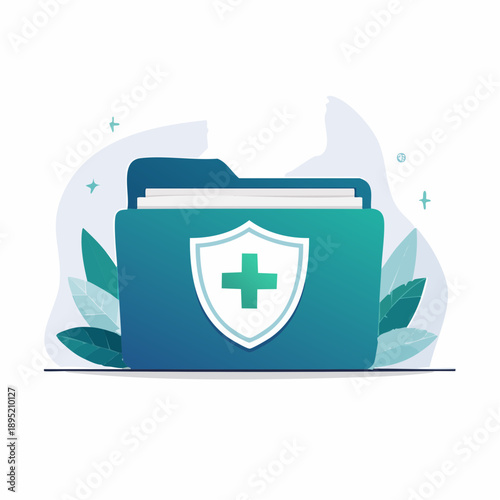 Obraz premium Secure digital health archive folder with medical shield protection for...