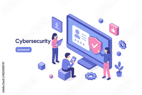 © LOBSTER LARRY, Fototapeta premium Secure digital management with isometric cyber protection team