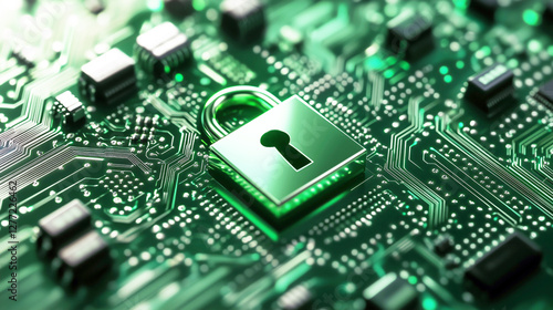 © Nazlykhan, Obraz premium Secure technology concept with lock symbol on electronic circuit board