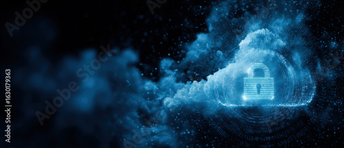 Fototapeta premium Securing data in the cloud digital lock concept cybersecurity virtual environment abstract view