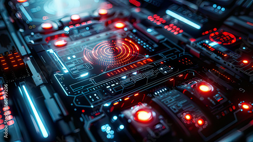 Fototapeta premium Security access through fingerprint scan, detailed biometric identification interface, glowing holographic elements, modern tech design,