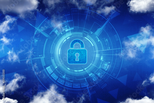 Naklejka premium Security concept: Lock on digital screen, contrast, 2d illustration