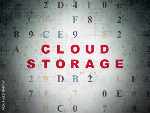 Obraz premium Security concept: Painted red text Cloud Storage on Digital Data Paper...