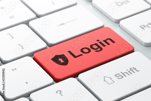 Fototapeta premium Security concept: Shield With Keyhole and Login on computer keyb