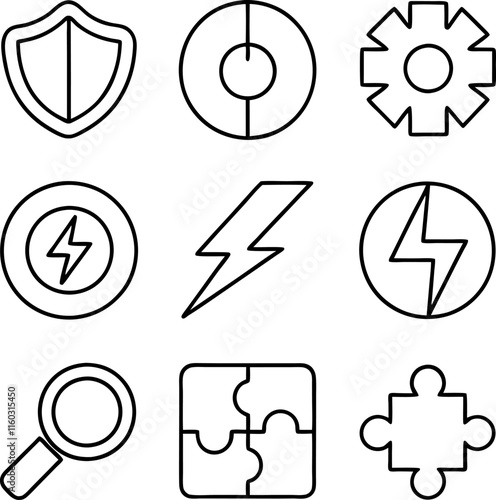 © Rita, Fototapeta premium Security, Energy, Performance, Optimization, and Solution Icons Set