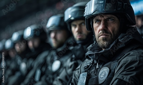 Fototapeta premium Security group with team security background. Security focus in football stadium