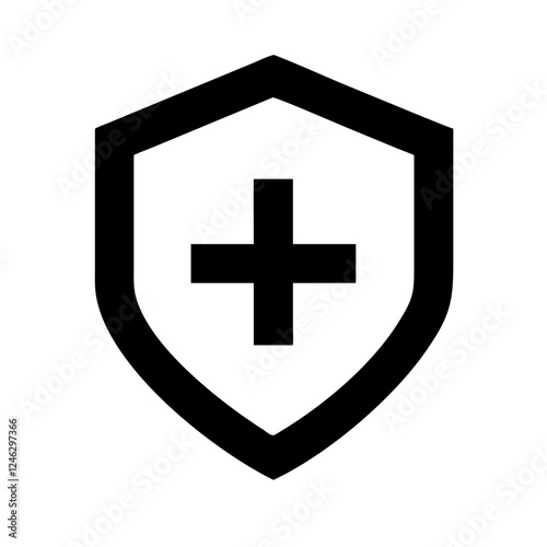 Fototapeta premium Security shield symbol with plus sign for medical protection concept